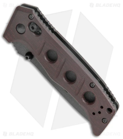 - Burgundy red canvas micarta scales with texture for added grip.